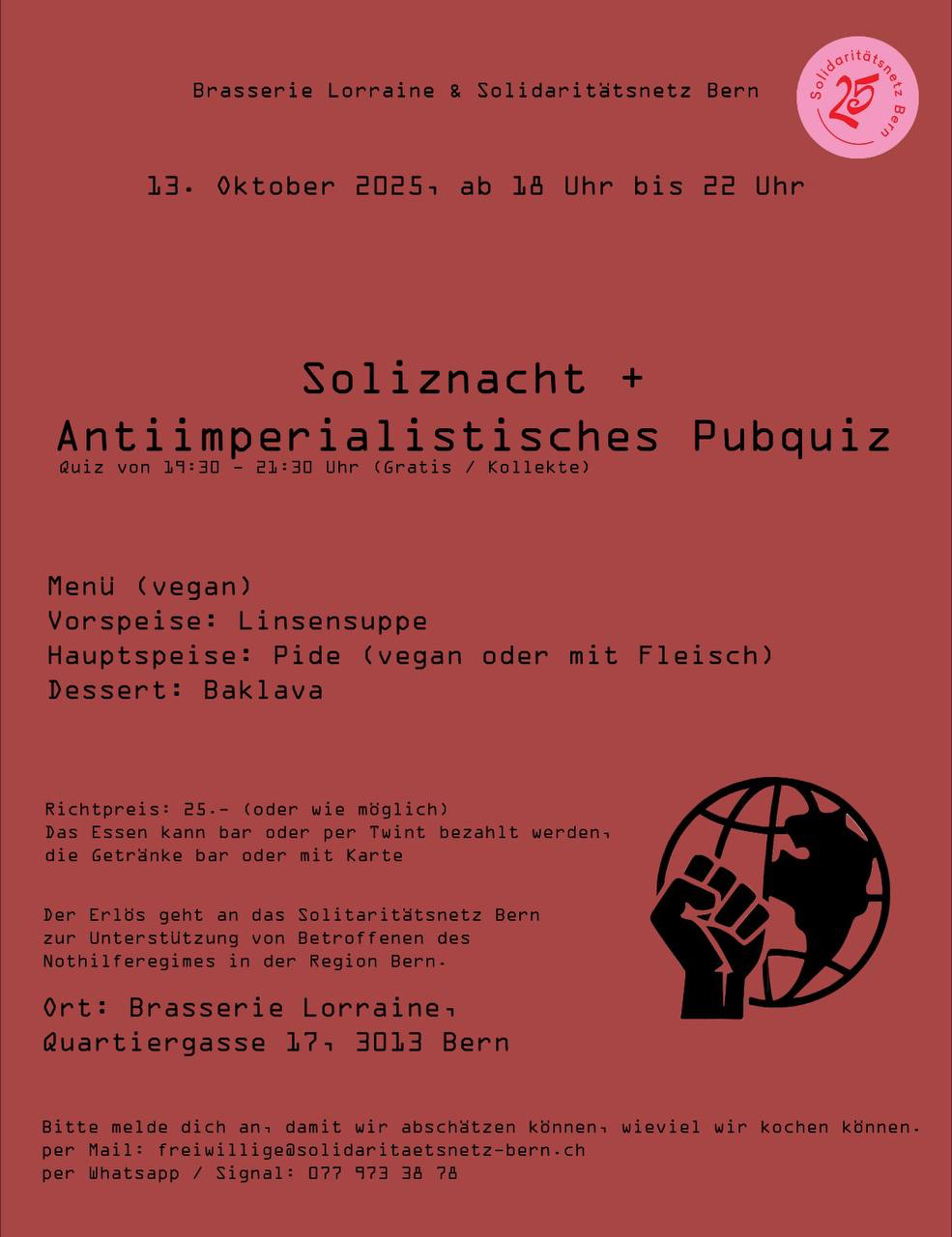 Wo: Solidaritätsnetz Bern, Quartiergasse 12 Bern🕰️
